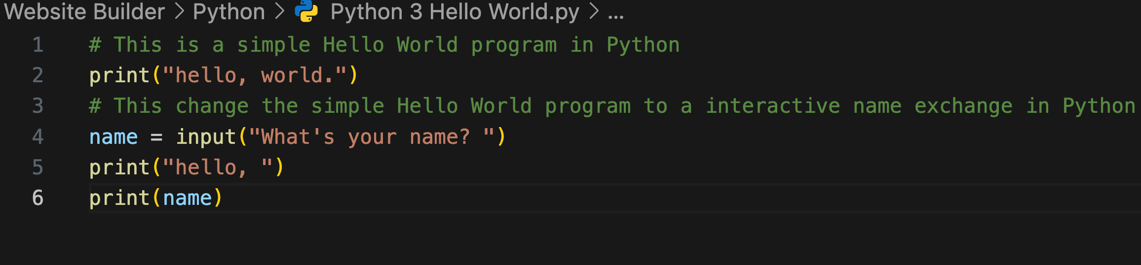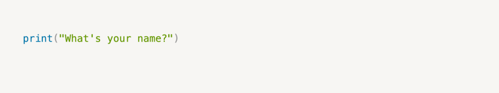 name = input("What's your name? ")– This line assigns the user’s input to the variablename.print(name)– This line prints the value of thenamevariable.